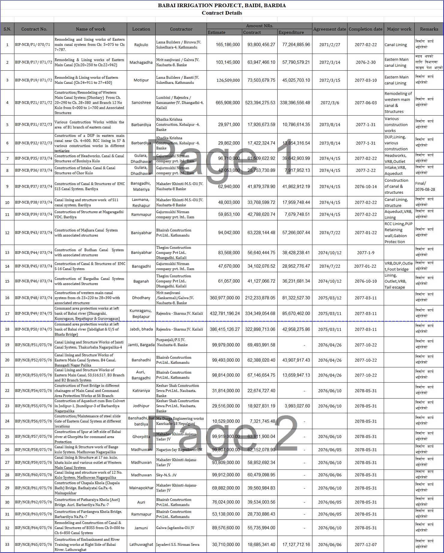 बबई सिंचाइ आयोजना, वैदी, बर्दिया